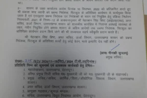 ऊर्जा अनुभाग-2, उत्तराखण्ड शासन के कार्यालय आदेश संख्या-1084/1(2)/2022-05-15/2021, दिनांक 10 सितम्बर, 2022 के द्वारा श्री