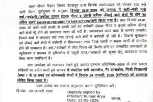 शीतलहर के दृष्टिगत भारत मौसम विज्ञान विभाग, देहरादून (IMD) द्वारा दिनांक 29 दिसम्बर, 2025 प्रात