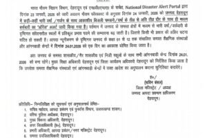 भारत मौसम विज्ञान विभाग, देहरादून एवं एन०डी०एम०ए० के सचेत, National Disaster Alert Portal द्वारा दिनांक