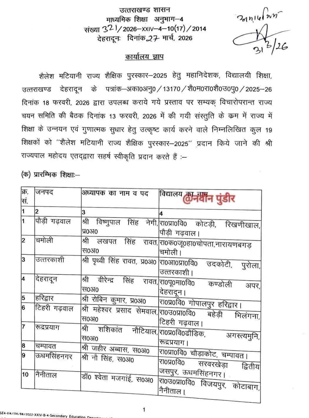 उत्तराखंड में #शैलेश #मटियानी #पुरस्कार 2025-26 हेतु चयनित सभी शिक्षकों को हार्दिक बधाई एवं शुभकामनाएं।