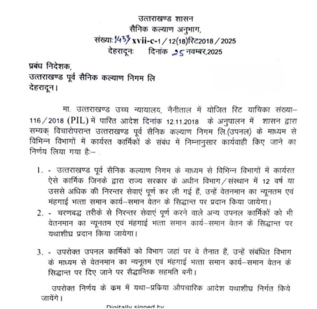 उपनलकर्मीयों के लिए आई खुशखबरी,सामान काम का समान वेतनमान हुआ लागू.आदेश जारी। 12 साल सेवा देने वालों को मिलेगा लाभ।