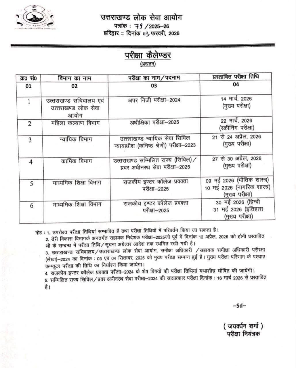 देहरादून :(बड़ी खबर) बेरोजगार युवाओं के लिए अच्छी खबर, भर्ती कलेंडर जारी