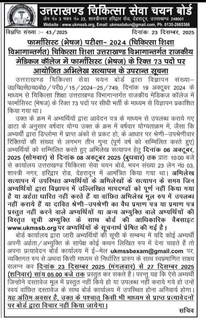 देहरादून :(बड़ी खबर) दो अलग अलग भर्तियों की विज्ञप्ति जारी
