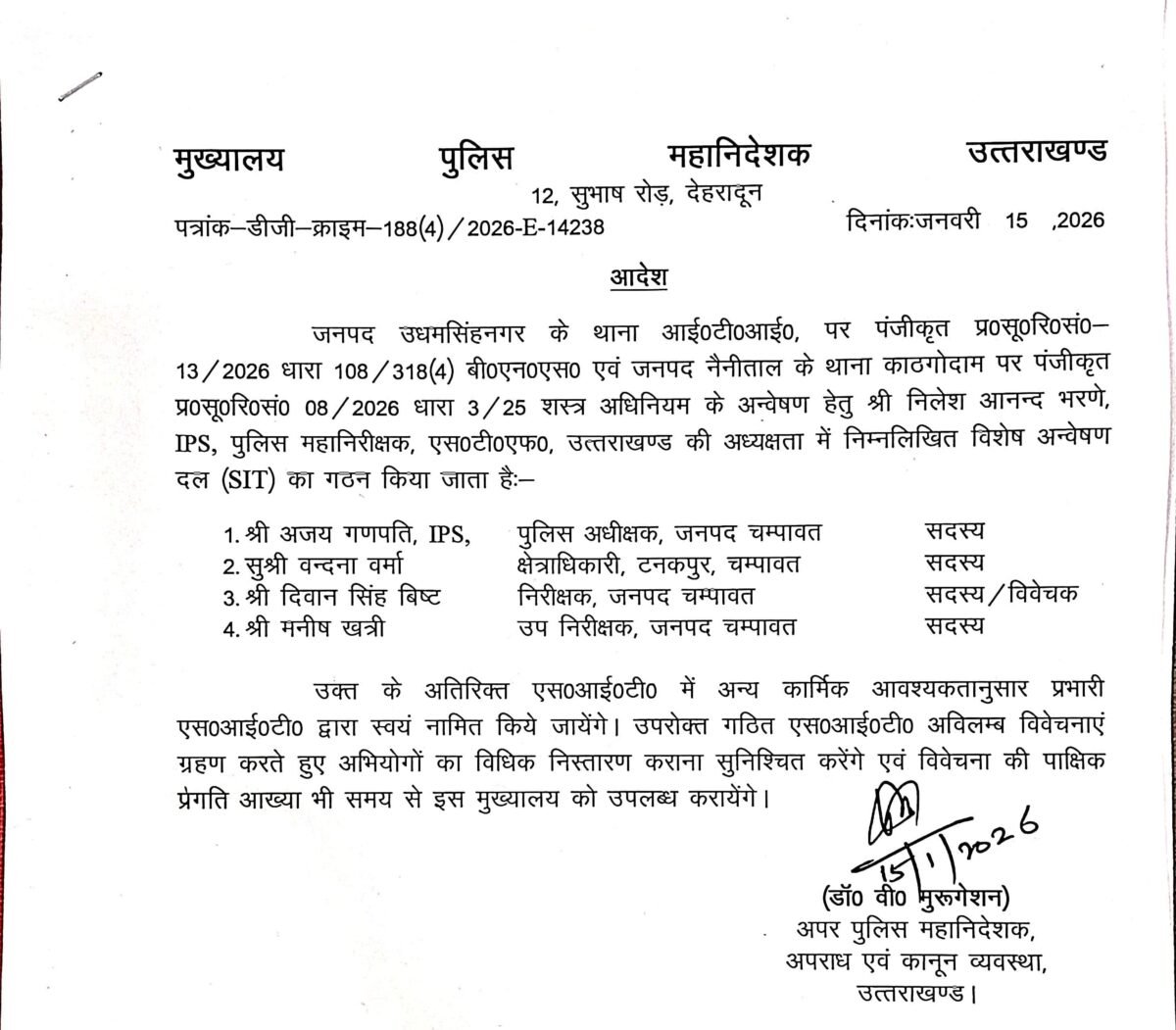 SIT में पुलिस अधीक्षक चम्पावत अजय गणपति