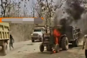रामनगर में चलते ट्रैक्टर में लगी भीषण आग, धू-धू कर जला वाहन
