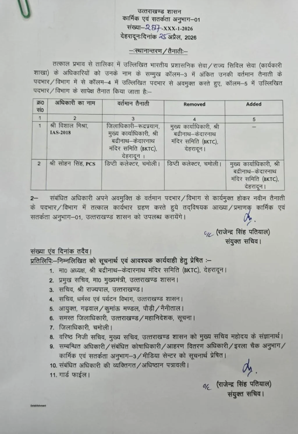 देहरादून :(बड़ी खबर) इस PCS अधिकारी को मिली बड़ी जिम्मेदारी