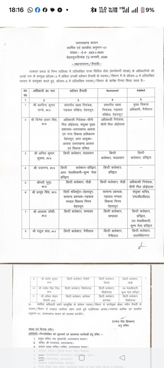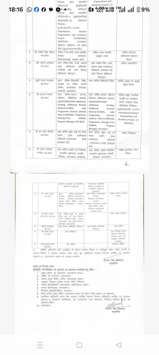 देहरादून :(बड़ी खबर) कई IAS और PCS अधिकारियों के तबादले
