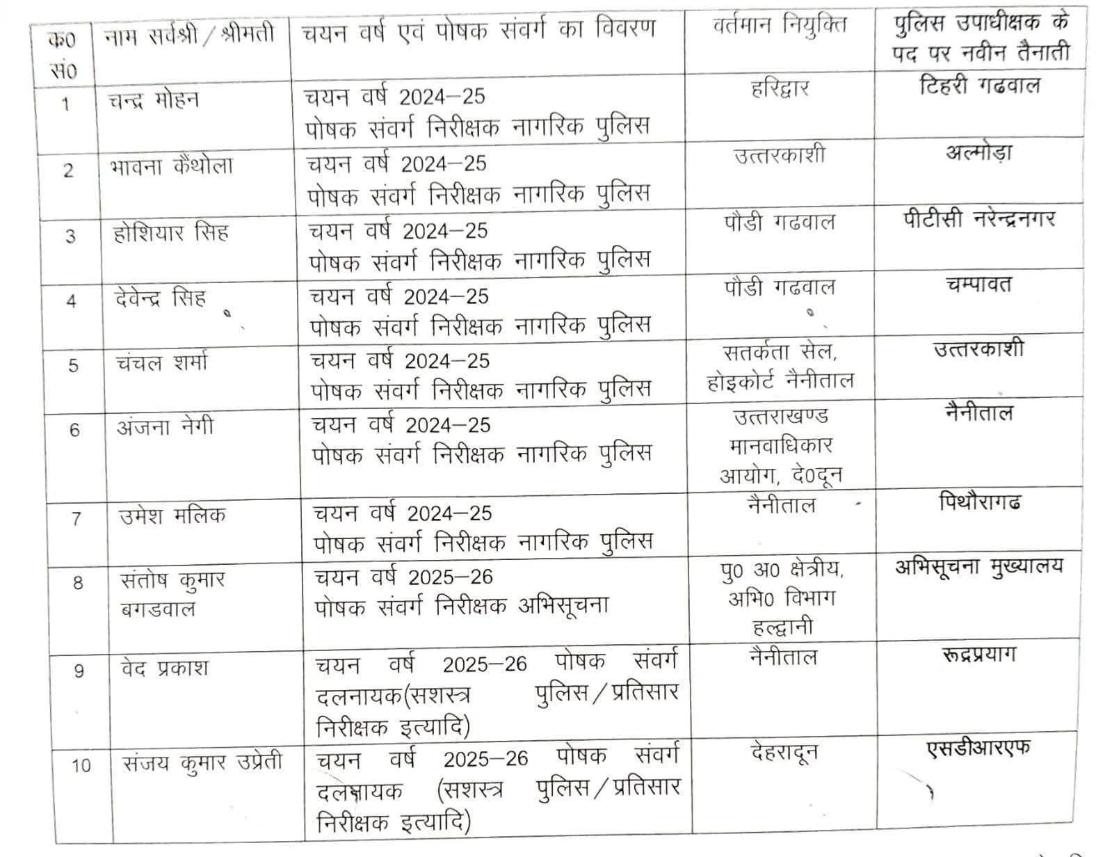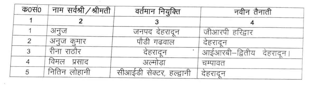 देहरादून : पुलिस महकमें तबादले शुरू, डिप्टी एसपी लेवल के अधिकारियों के ताबदले