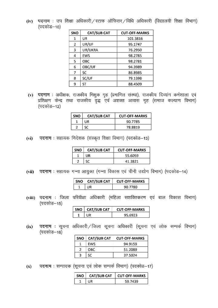 एतद्वारा सूचित किया जाता है कि उत्तराखण्ड सम्मिलित राज्य सिविल / प्रवर अधीनस्थ सेवा प्रारम्भिक परीक्षा-2025 का परिणाम दिनांक 08 अक्टूबर, 2025 को घोषित किया गया है, जिसके क्रम में पदवार श्रेणीवार / उपश्रेणीवार कट ऑफ मार्क्स निम्नवत् हैं-