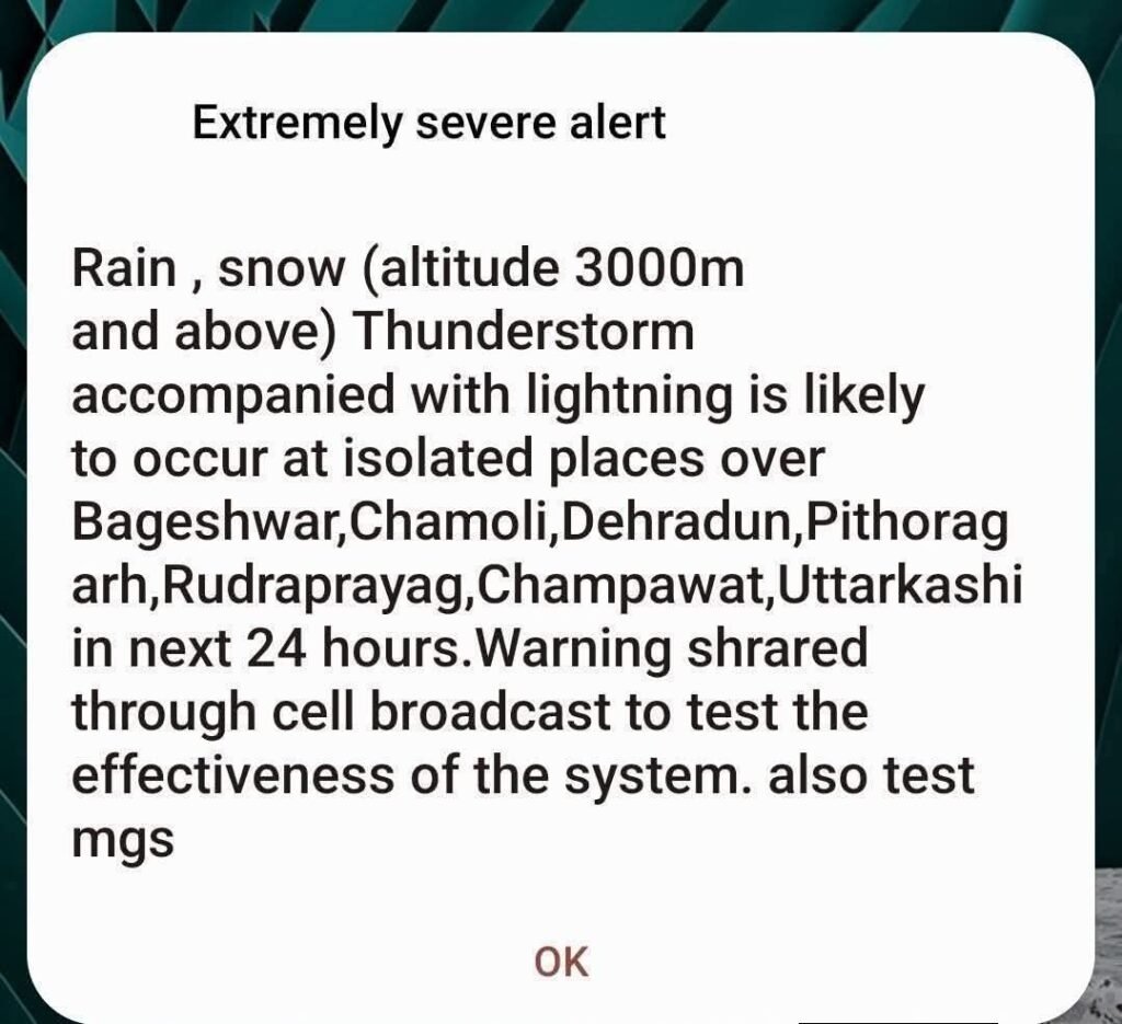 अभी-अभी मौसम विभाग ने चेतावनी दी है कि अगले 24 घंटों में बागेश्वर, चमोली, देहरादून, पिथौरागढ़, रुद्रप्रयाग, चंपावत और उत्तरकाशी में अलग-अलग स्थानों पर भारी बारिश/भारी बर्फबारी (3000 मीटर और उससे अधिक ऊंचाई पर)/बिजली के साथ गरज/ओलावृष्टि/तेज हवाएं (40-50 किमी प्रति घंटा) चलने की संभावना है,,,