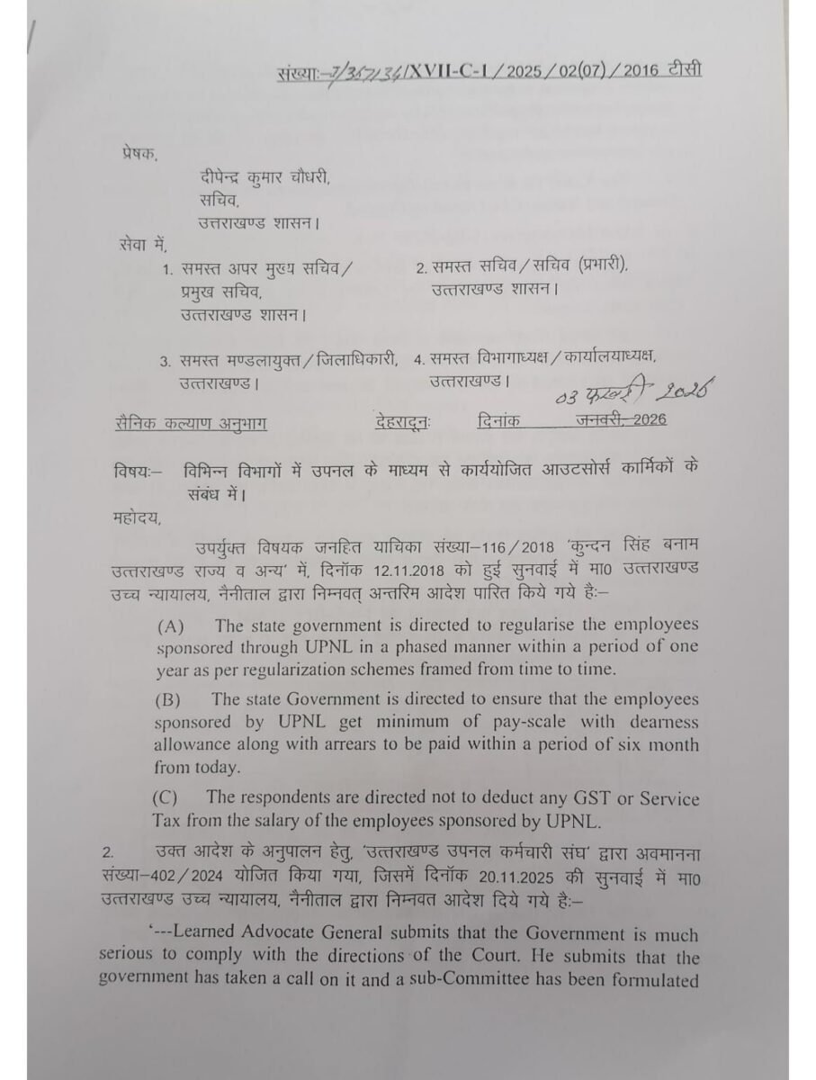उपनल कर्मियों को दस वर्ष की सेवा पूरी करने पर समान कार्य के बदले समान वेतन दिए जाने का शासनादेश जारी होने के साथ ही, मुख्यमंत्री पुष्कर सिंह धामी के खाते में एक और बड़ी उपलब्धि दर्ज हो गई है।