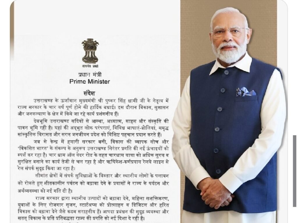 प्रधानमंत्री का संदेश – चार साल में विकास और सुशासन की नई पहचान बना उत्तराखंड