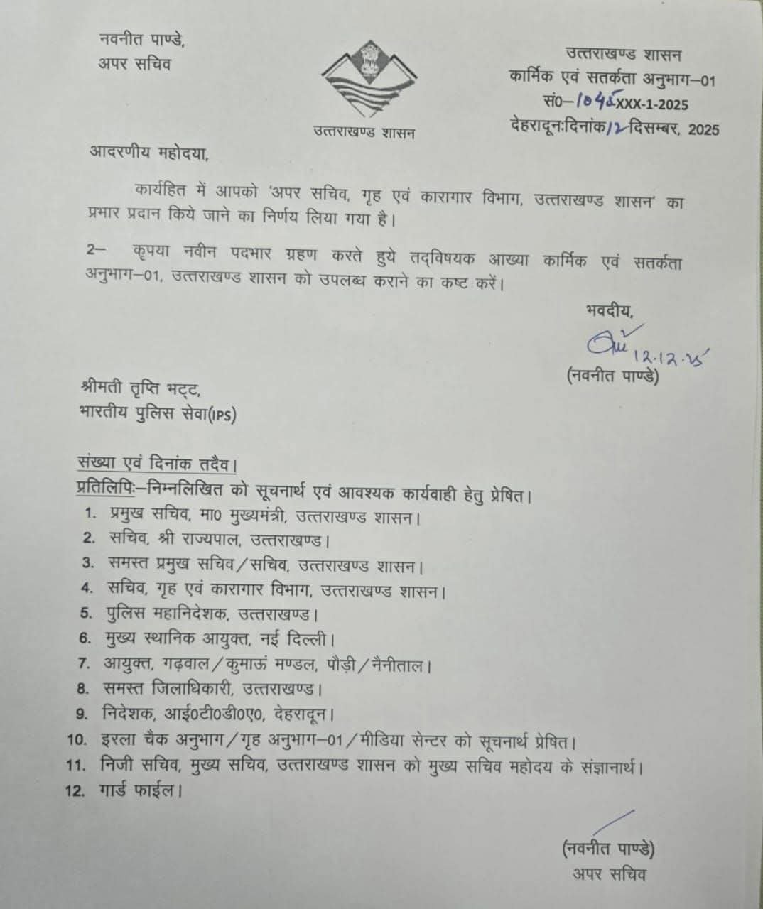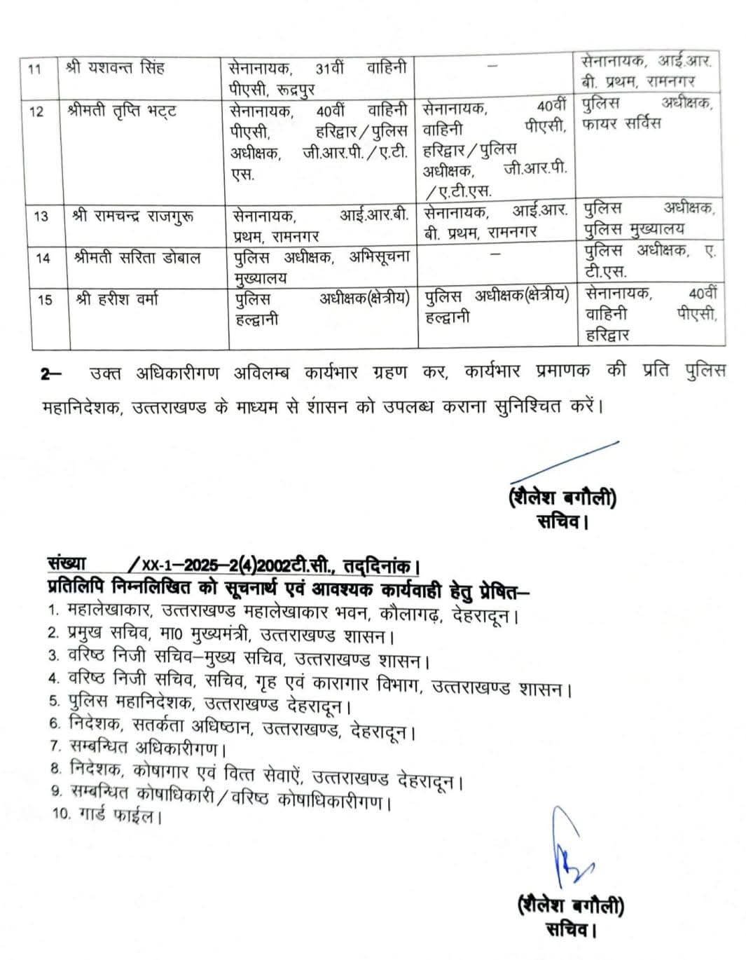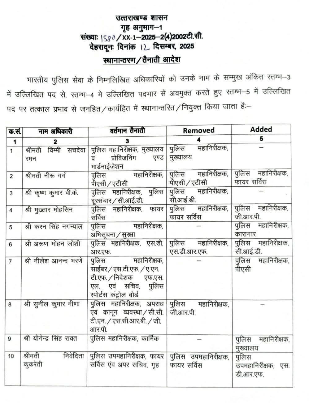 उत्तराखंड में कई आईपीएस अधिकारियों के ट्रांसफर!