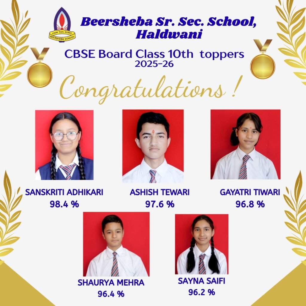 हल्द्वानी : बियरशिबा स्कूल के दसवीं कक्षा के विद्यार्थियो का बोर्ड परीक्षा में उत्कृष्ट प्रदर्शन