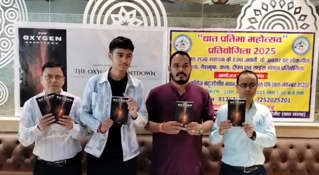 और खास बात यह है कि यह किताब “द ऑक्सीजन काउंटडाउन” पुस्तक Amazon पर हॉट सेलर बुक बन चुकी है। इतनी कम उम्र में इतनी बड़ी सफलता हासिल कर इस युवा ने शहर का ही नहीं बल्कि पूरे उत्तराखंड का नाम रोशन किया है। युवाओं के लिए यह एक प्रेरणा है कि उम्र कभी सपनों को सीमित नहीं करती, अगर जुनून और लगन हो तो कामयाबी कदम चूमती है। कक्षा 12वीं के छात्र और युवा लेखक मानवेंद्र सिंह बिष्ट (MKS Bisht) की बहुचर्चित साइ-फाई थ्रिलर पुस्तक “द ऑक्सीजन काउंटडाउन” का भव्य विमोचन समारोह अत्यंत गरिमामयी वातावरण में आज आयोजित किया गया युवा लेखक मानवेंद्र सिंह बिष्ट ने अपनी पुस्तक के विषय पर बोलते हुए कहा –