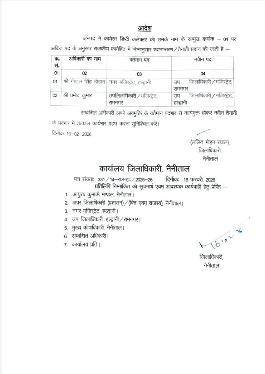 हल्द्वानी : (बड़ी खबर) दो SDM के तबादले