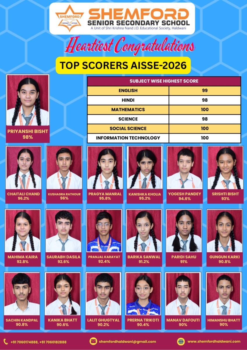 हल्द्वानी :(बधाई) शैमफोर्ड स्कूल के छात्र-छात्राओं ने बोर्ड परीक्षा में किया उत्कृष्ट प्रदर्शन, 25% विद्यार्थियों ने प्राप्त किए 90% से अधिक अंक