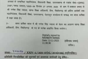 देहरादून:(बड़ी खबर) यहां खंड शिक्षा अधिकारी तत्काल प्रभाव से निलंबित