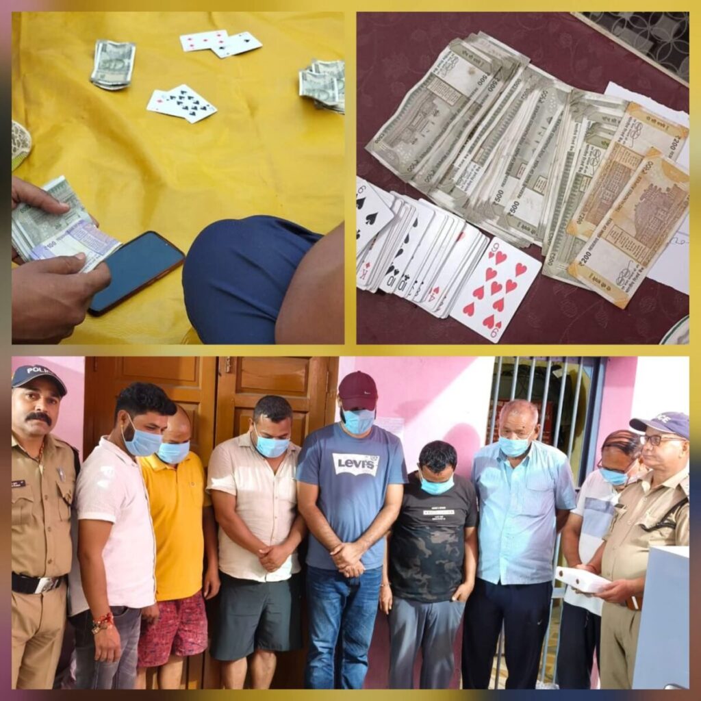 जुआ खेल रहे 7 जुआरियों को पुलिस ने किया गिरफ्तार,जुआरियों के कब्जे से 1 लाख से अधिक की धनराशि हुई बरामद।