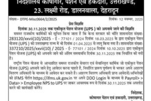 देहरादून :(बड़ी खबर) कर्मचारियों के लिए पेंशन Update