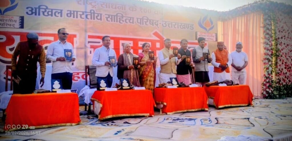 पद्मश्री डॉ. माधुरी बर्थवाल जी, डॉ. जगदीश पंत ‘कुमुद’, प्रदेश,महामंत्री अखिल भारतीय साहित्य परिषद्, श्री मयंक मित्तल जी, श्री गोपाल भट्ट जी, प्रमुख व्यवसायी तथा कार्यक्रम के संयोजक श्री सौरभ पाण्डेय, प्रदेश सहमंत्री अखिल भारतीय साहित्य परिषद् उत्तराखंड के कर कमलों से किया गया ।