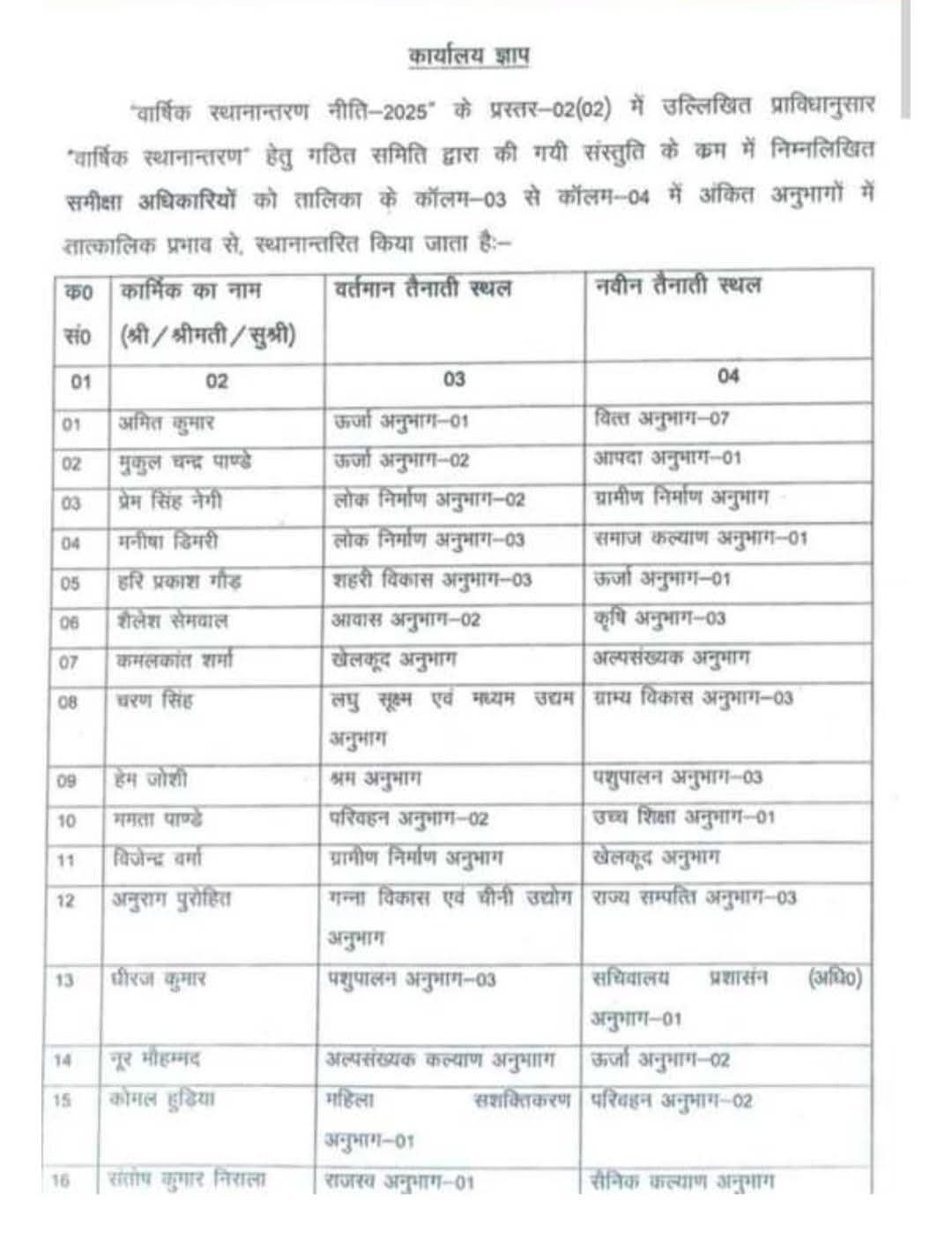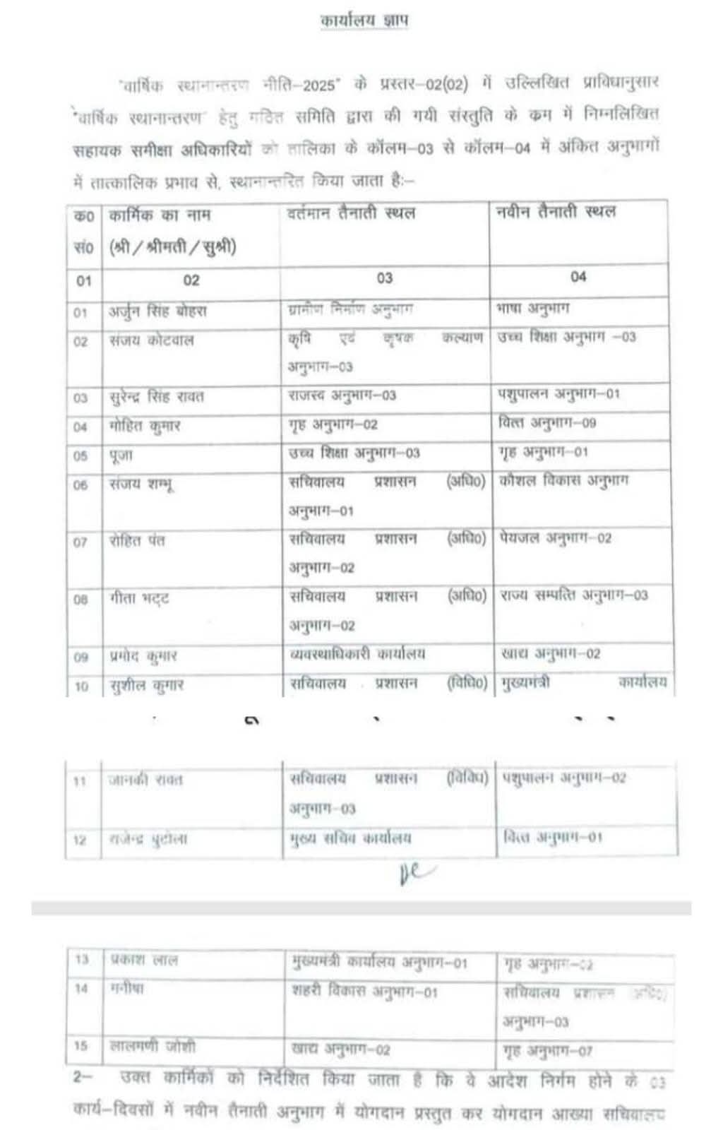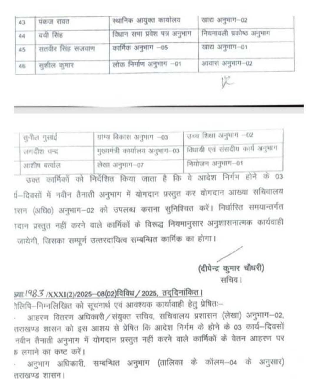 उत्तराखंड सचिवालय में बड़ी संख्या में ट्रांसफर, अधिकारियों और कर्मचारियों के बड़े पैमाने पर फेरबदल।