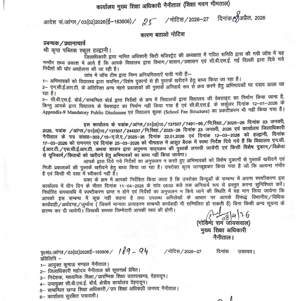 हल्द्वानी में 46 निजी स्कूलों और बुक सेलरों के गठजोड़ समेत विभिन्न अनियमितताओं पर जिला प्रशासन का एक्शन, 3 दिन में जवाब तलब