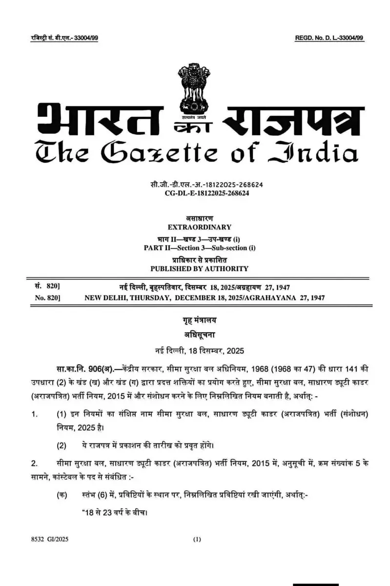 अग्निवीर को आरक्षण से संबंधित नियम की अधिसूचना