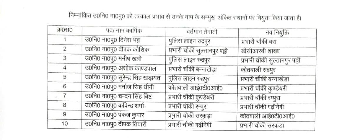 रुद्रपुर- एसएसपी उधमसिंहनगर अजय गणपति ने किए तबादले