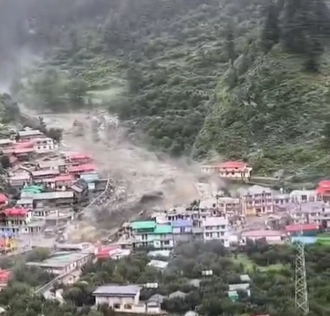 उत्तरकाशी। उत्तरकाशी जिले के धराली गांव स्थित खीरगंगा क्षेत्र में मंगलवार सुबह आई भीषण बाढ़ ने भारी तबाही मचा दी। बाढ़ के चलते कई होटलों और दुकानों में मलबा व पानी घुस गया है, जबकि दर्जनों लोगों के दबने की आशंका जताई जा रही है। धराली मार्केट क्षेत्र पूरी तरह प्रभावित हुआ है, जहां कई भवनों को गंभीर नुकसान पहुंचा है।