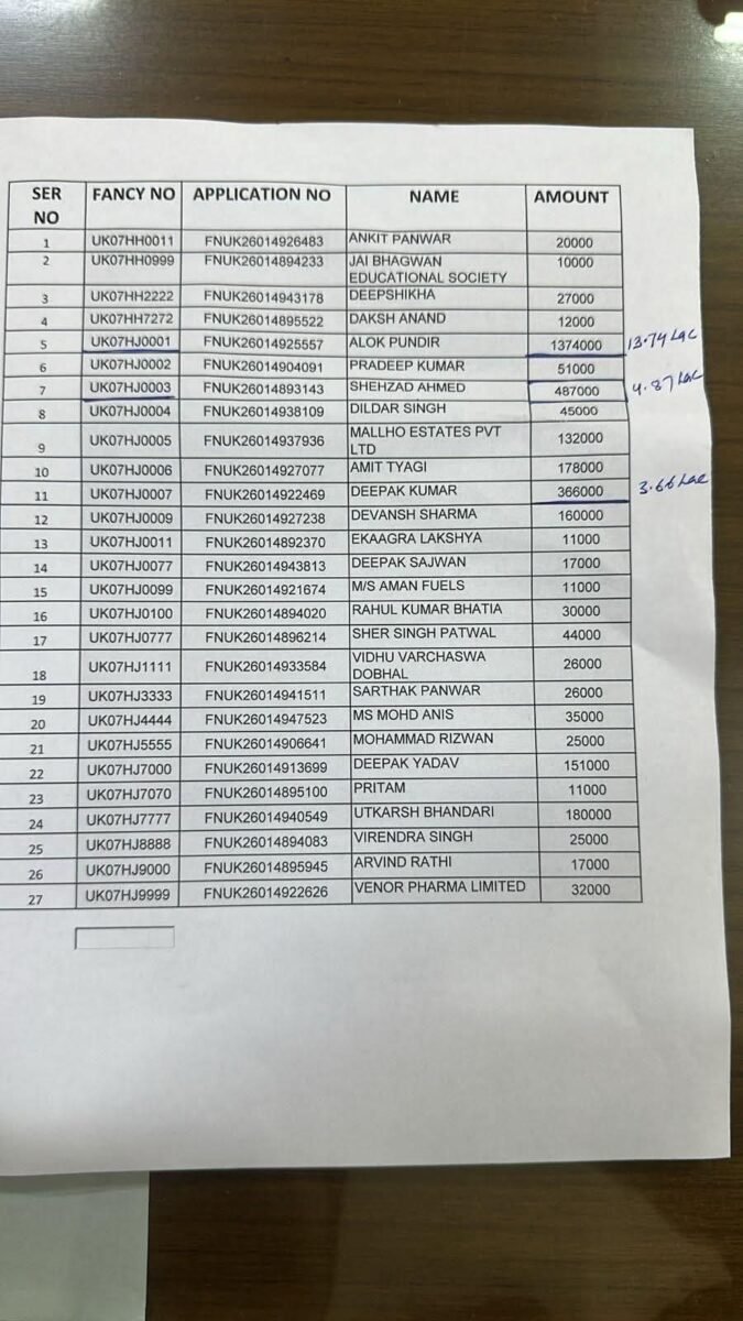 फैंसी नंबर का क्रेज: UK 07 HJ 0001 पर लगी 13.74 लाख की बोली
