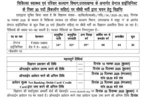 देहरादून:(बड़ी खबर) रिक्त पदों पर सीधी भर्ती हेतु विज्ञप्ति जारी
