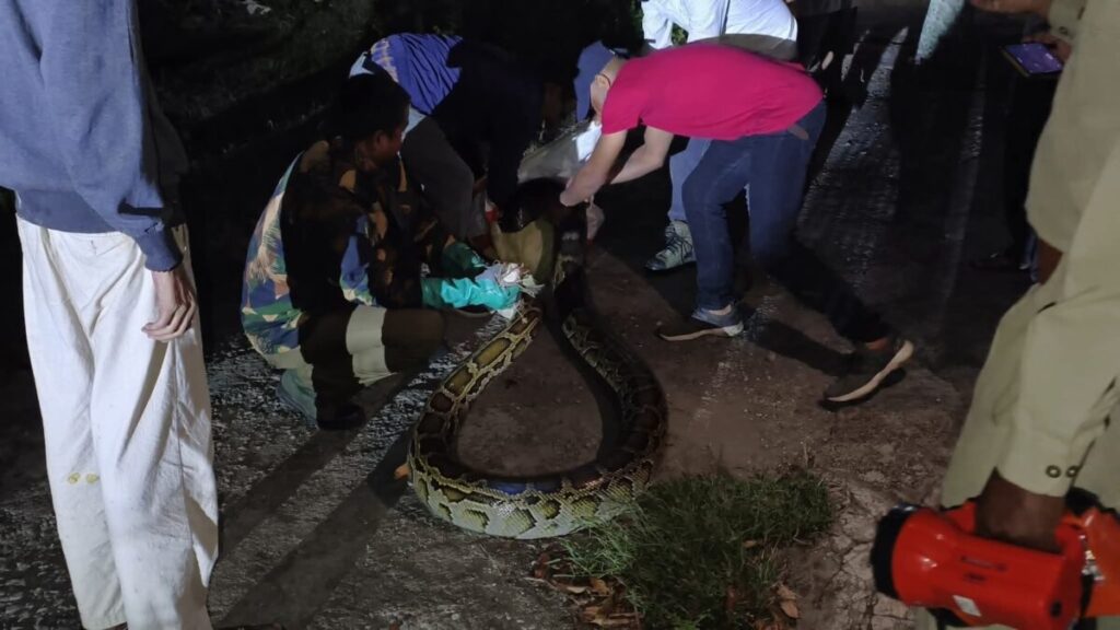 - ग्राम राधाबंगर में हड़कंप! 15 फुट लंबा विशालकाय अजगर घर के पास दिखा, वन विभाग ने किया रोमांचक रेस्क्यू।