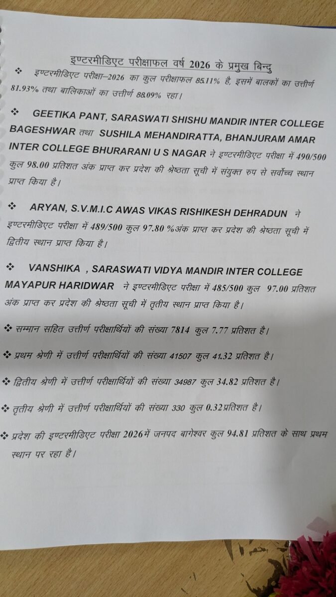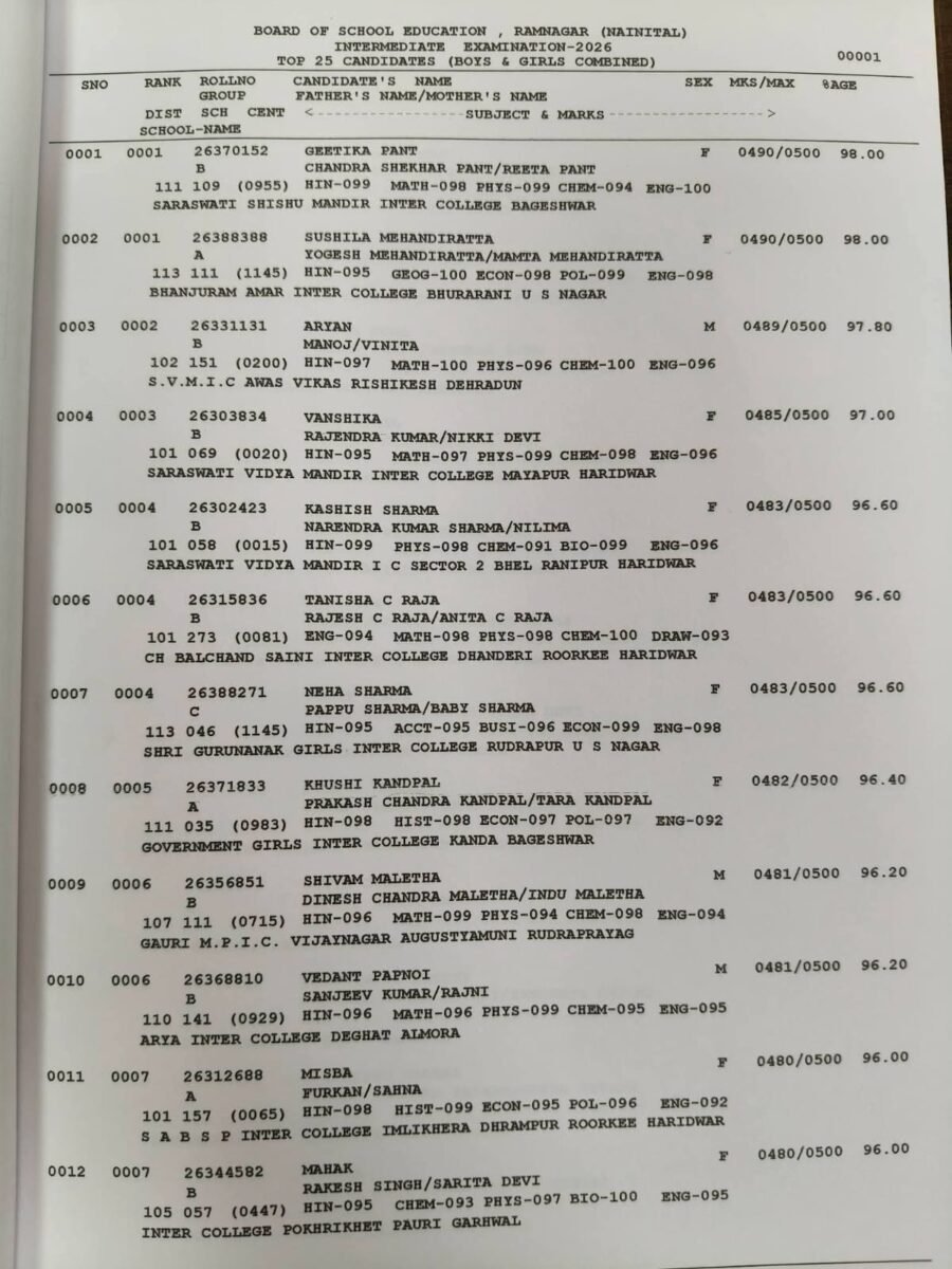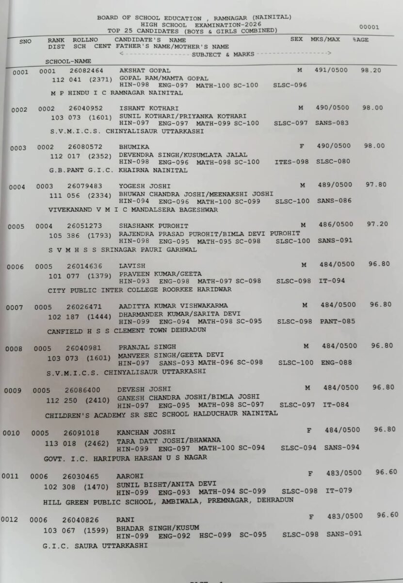 उत्तराखंड बोर्ड के हाईस्कूल और इंटरमीडिएट की टॉपर्स सूची जारी।लड़कियों ने फिर मारी बाज़ीकई जिलों के छात्र- छात्राओं ने टॉप 10 में जगह बनाई।