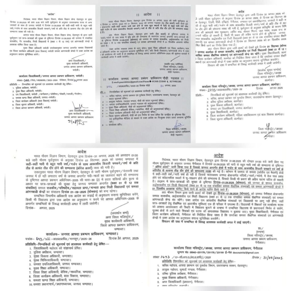 उत्तराखंड-/ मौसम विज्ञान केंद्र, देहरादून के अनुसार जनपद चमोली,पौड़ी, अल्मोड़ा, चंपावत व नैनीताल में भारी से बहुत भारी वर्षा का पूर्वानुमान जारी किया गया है। इसके मद्देनजर 1 सितम्बर 2025 सोमवार को सभी आंगनबाड़ी केंद्रों के साथ ही कक्षा 1 से 12वीं तक के सभी विद्यालयों में अवकाश घोषित किया गया है।