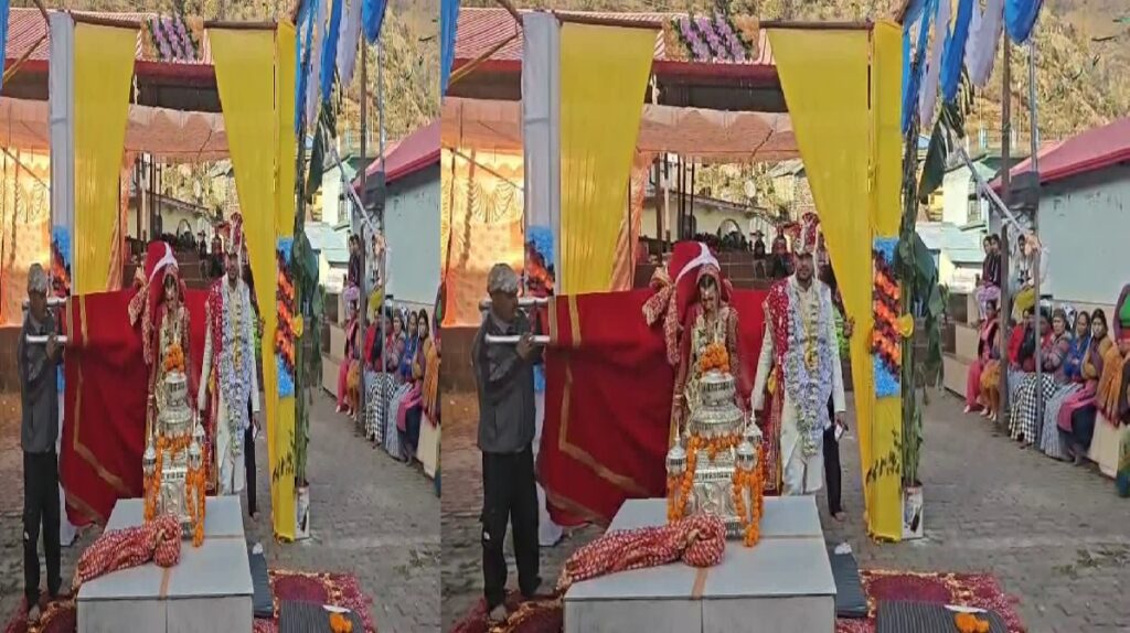 स्थानीय लोगों ने नवदंपति का पारंपरिक तरीके से स्वागत किया और विवाह में देवभूमि की संस्कृति की झलक देखने को मिली। यह मांगलिक कार्यक्रम हिंदू रीति-रिवाज और पहाड़ी विवाह परंपरा के अनुसार संपन्न हुआ। इस अवसर पर नवदंपति को वासुकीनाग देवता ने आशीर्वाद दिया।
