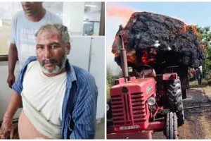 हल्द्वानी: यहां शॉर्ट सर्किट से गेहूं की खड़ी फसल ले जा रही ट्रैक्टर ट्राली में लगी आग, चालक झुलसा