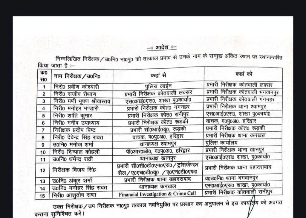 SSP ने कर दिए तबादले… कई कुर्सियां हिली…..