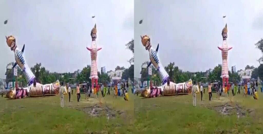 सुबह मौसम साफ था लोग तैयारियों में जुटे थे…लेकिन दोपहर होते-होते आसमान में बादल मंडराने लगे। फिर आई तेज हवाओं ने वो कर दिखाया जिसकी किसी ने कल्पना भी नहीं की थी। हवा के तेज झोंकों से तीनों पुतले एक-एक कर गिरने लगे। किसी का सिर अलग हुआ किसी का हाथ टूटा और किसी का पूरा शरीर मैदान में जा गिरा। इस अफरा-तफरी के बीच लोग बस शुक्र मना रहे थे कि उस वक्त कोई नजदीक नहीं था..वरना हादसा हो सकता था।