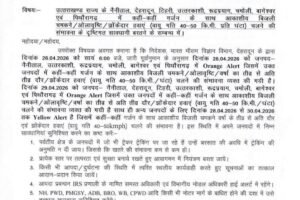 देहरादून :(बड़ी खबर) 8 जिलों में तूफान-बारिश का अलर्ट जारी